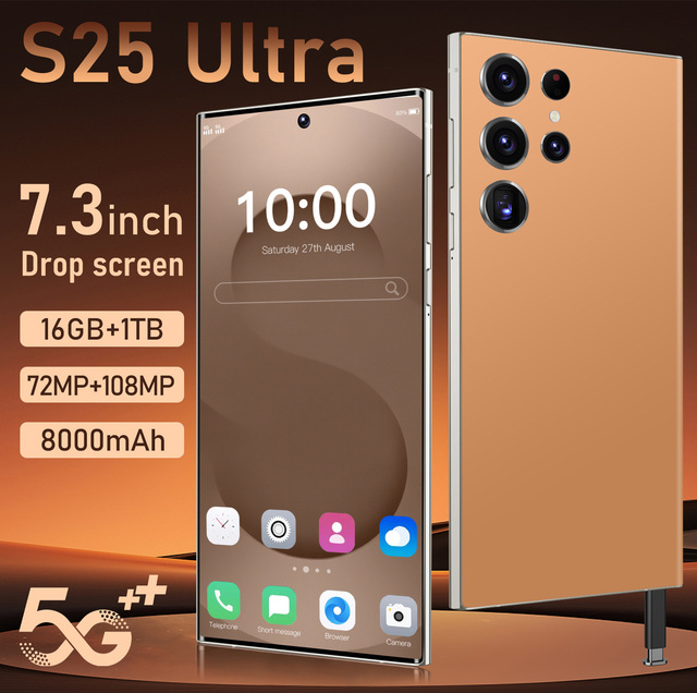 S25 Ultra6.75 Smartphone de pantalla grande 108MP Cámara trasera 8 núcleos Dual SIM Bolígrafo incorporado Funcionamiento en inglés para juegos Versión global